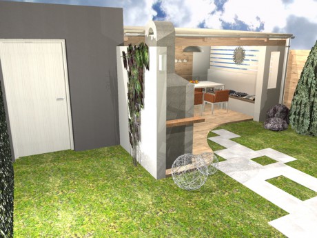 Přístavba k řadovému domu a zahradní altán, Bášť